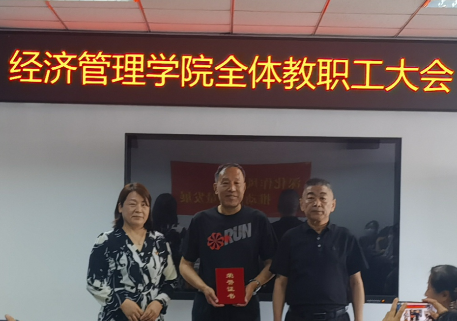 王万山、刘芳为学院原党委书记胡宝贵同志颁发了荣誉证书并感谢他长期以来为学院改革发展稳定做出突出贡献。